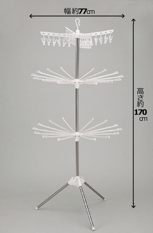 | 仕様 | 組立式 ピンチ:24ケ タオルハンガー:16ウイング 耐荷重:全体10kg、ピンチハンガー2kg(1本あたり0.5kg)、タオルハンガー1段4kg(1本あたり0.25kg) |