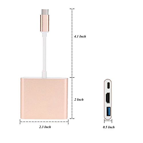 Type C to HDMI Adapter, Rodzon USB 3.1 Type-C to HDMI Cable Adapter, USB C Charging Port+HDMI 4K+USB 3.0, for 12" New Macbook/Chromebook Pixel/Dell XPS 13/Lumia 950XL & More Type-C Devices