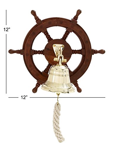 Deco 79 Wood Ship Wheel Bell, 12 by 12-Inch