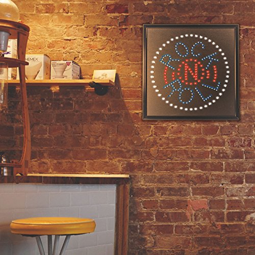 Equipped with hardware for hanging, this LED sign comes in a sleek and slim black frame and is ready to go.