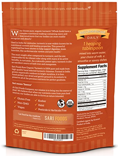 BIOAVAILABILITY WITH WHOLE TURMERIC POWDER. Turmeric contains compounds (such as curcumin and ar-turmerone) that never occur as an isolate in nature for good reason. Taking isolated single nutrients, as you might find in a curcumin capsule, is not a normal way to eat - the vital elements that make these compounds so beneficial are missing. Sari Foods Organic Turmeric Powder includes the entire root with its complete and complex nutritional makeup that your body can both recognize and utilize.