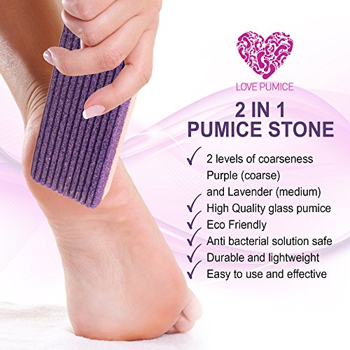 New and improved features - Unique 2 in 1 design for best results. Love Pumice has 2 levels of coarseness to suit any type of feet. Use according to your personal needs and at the pressure you like.