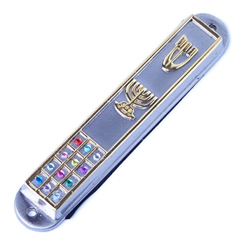 - Heavy duty and elegant Mezuzah with Menorah as shown. Measures about 3.5 inches.