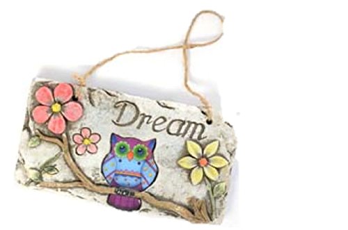 Owl Hanging Wall Plaque Sign With Flowers Rustic Concrete ( Dream)