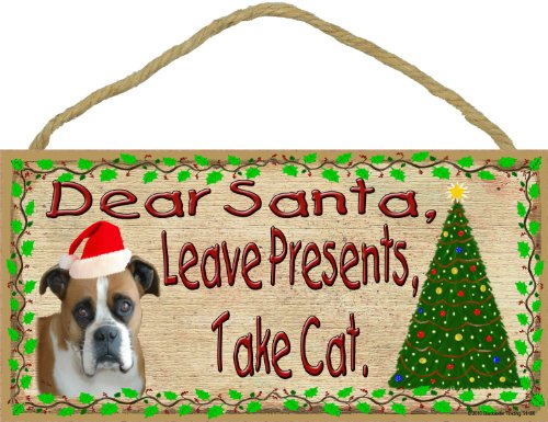 Dear Santa Leave Presents Take Cat Boxer Christmas Dog Sign Plaque 5"x10"