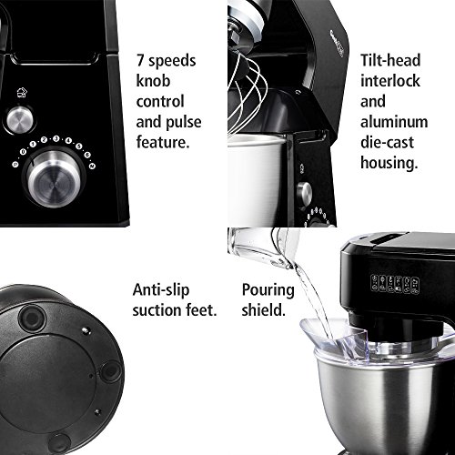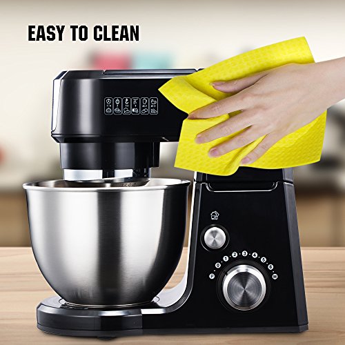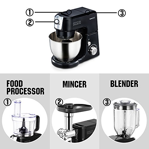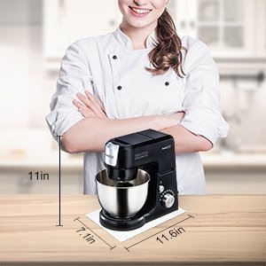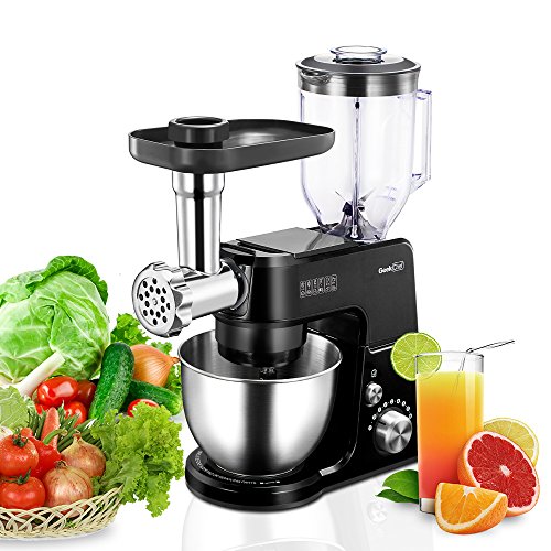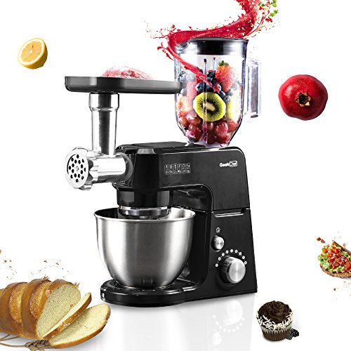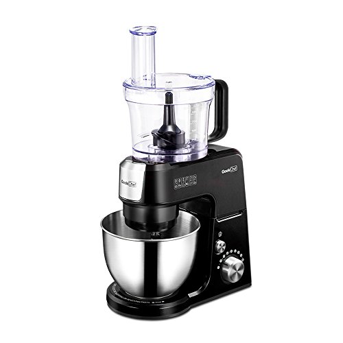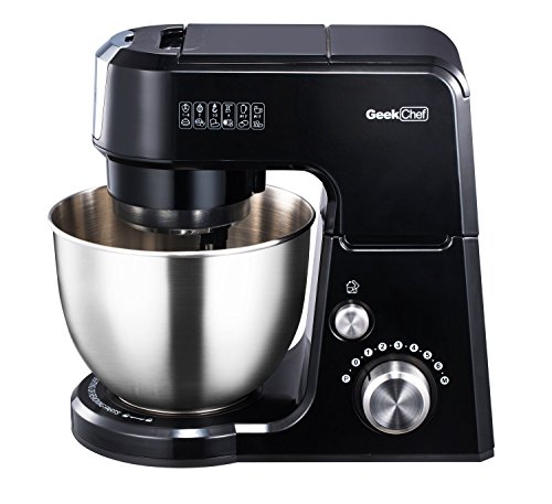 The GeekChef multi-function stand mixer is the all-in-one solution for all your baking and food preparation needs. 2.6 quart (qt.) stainless steel mixing bowl with 7 speeds that easily mixes, kneads and whips your favorite ingredients. Its small footprint makes it convenient for storage. 3 extra power hubs gives users more versatility. The powerful motor can operate optional attachments such as food processor, blender, and mincer.Feature