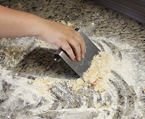 Our Stainless Steel Bench Scraper is the perfect tool for any baker, chef, hobbyist or home cook. One of the most versatile tools in the kitchen, it has a wide variety of uses. Perfect for dividing bread or pastry dough, measuring and cutting pasta dough, and even brownies and scones. Scrape dough off the counter or use when lifting sticky dough from the counter to the baking tray. The best tool when decorating cakes to get that perfectly smooth professional quality frosting. The wide surface gives a clean, smooth finish on the final layer of buttercream on iced cakes. The handle is flush with the blade, making it easy to rest along the side of the cake. Ideal for working with fondant or gumpaste. It can lift, cut and scrape gently. Use it when working with melted chocolate on a marble slab. Easily chop vegetables, herbs and sausages and scoop them into the pan. The durable 6" x 4" scraper features a convenient measuring guide, displaying 1" markings along the bottom. Precisely measure and cut using the same tool. Makes dinner a breeze! This multi-purpose tool can also be use for super easy cleanup, especially when flour and dough has glued itself to the counter. Simply use the bench scraper to scrape your work surfaces clean. Dishwasher safe. Great gift for the beginner or professional baker, chef or cook! 0 |