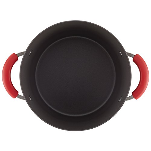 If the pot is versatile enough to simmer soup, boil water and braise a stew - and is fun and stylish to boot - the cookware piece must be the Rachael Ray Hard-Anodized Nonstick 8-Quart Covered Stockpot. Count on Rachael Ray(r) for top-quality cookware that cooks like a champ and cleans in a jiff. Designed to tackle so many common cooking tasks, this roomy stockpot features long-lasting, hard-anodized construction that heats swiftly and evenly, and the interior is coated in durable nonstick for impeccable food release and easy cleanup. Use the colorful stockpot to create a satisfying batch of Rachael's Chicken and Herb Pot Pie Stoup or Drunken Spaghetti with Hot Salami Meat Sauce. Rachael Ray(r) cookware features brightly-colored, grippy handles that are rubberized for comfort and double riveted for strength. A shatter-resistant glass lid makes it easy to monitor foods while they cook without losing heat or moisture. This stockpot is oven safe to 350 DegreeF and dishwasher safe for convenience, plus it complements many other pieces in Rachael's collections. Experience the fun fusion of practical cooking performance and contemporary kitchen style with the Rachael Ray Hard-Anodized Nonstick 8-Quart Covered Stockpot.Feature