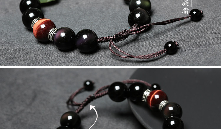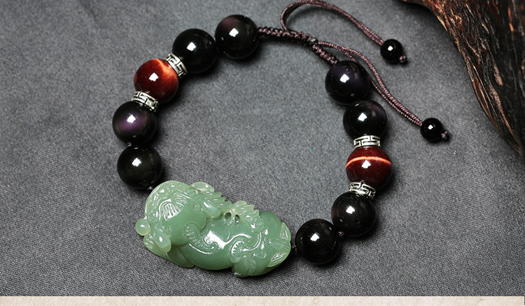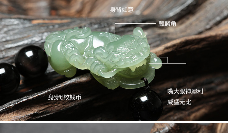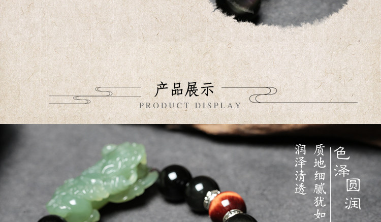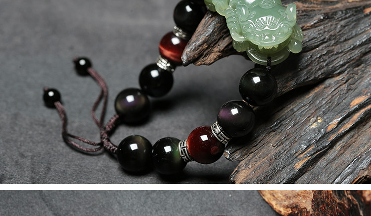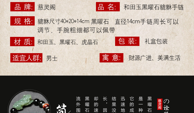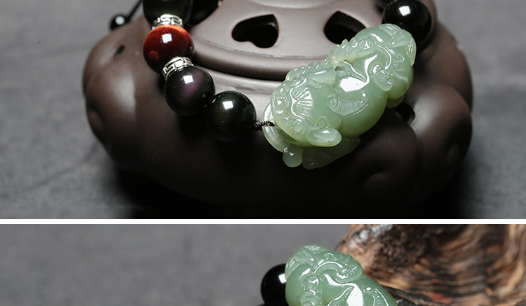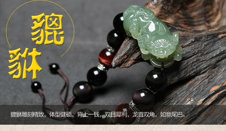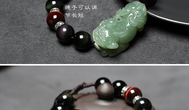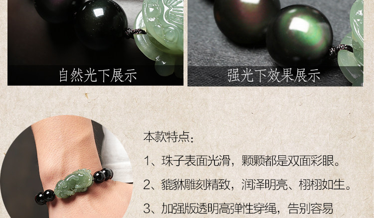 开光和田玉貔貅手链 玉石貔貅黑曜石男士手串银饰时尚情侣款饰品