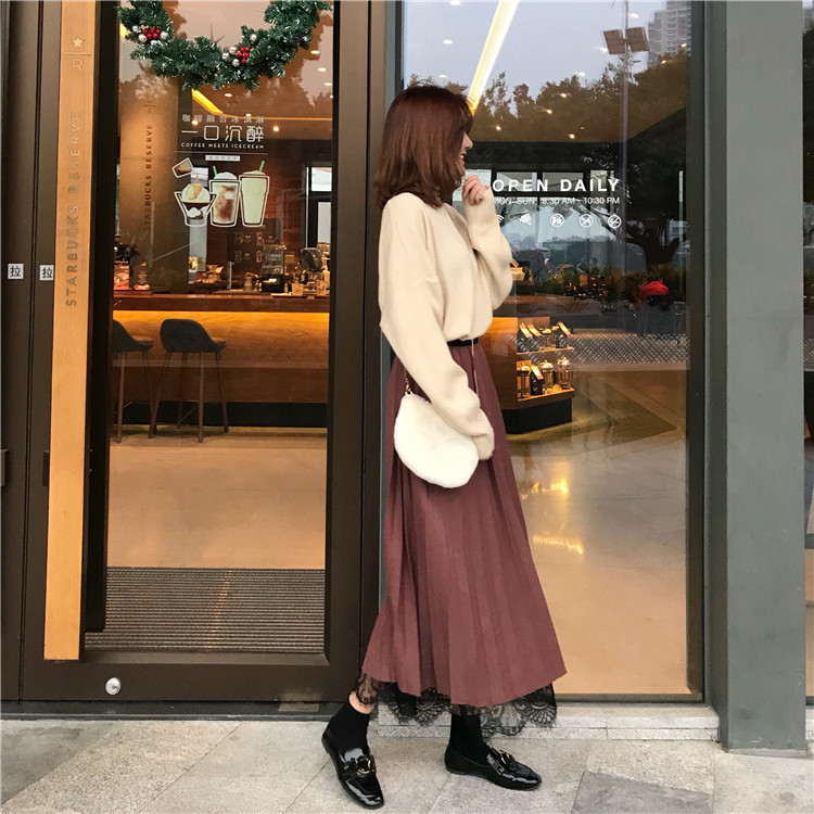 ウエストゴムで履き心地がラクなミモレ丈プリーツスカート★