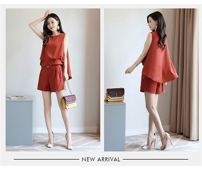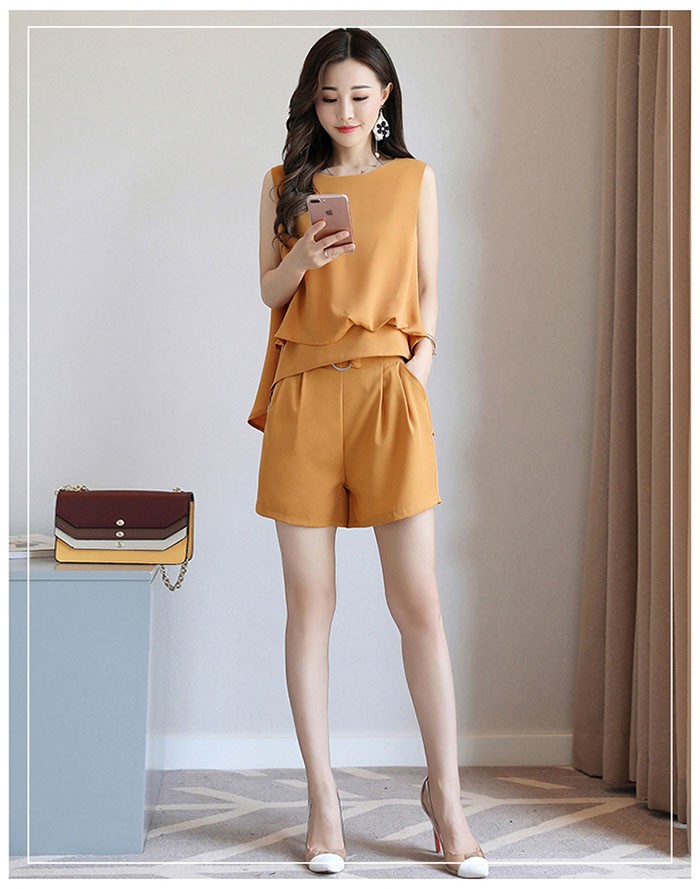 セットアップ レディース 上下セット ノースリーブブラウス ショートパンツ 2点セット シフォンブラウス ルームウェア 大きいサイズ 2018春夏新作 セットアップ レディース おしゃれ 20代 30代商品詳細素材:ポリエステル&その他セット:ノースリーブブラウス&ショートパンツ2点セット季節:春夏秋カラー:イェロー、ブラック、ベージュコーヒー、レッドブラウンサイズ:M L XL 2XL 3XL産地:中国サイズ参照表M 肩幅37cm 前着丈49cm 後ろ着丈66cm パンツ着丈38cm ヒップ94cm ウエスト70cm L 肩幅38cm 前着丈50cm 後ろ着丈67cm パンツ着丈39cm ヒップ98cm ウエスト74cmXL 肩幅39cm 前着丈51cm 後ろ着丈68cm パンツ着丈40cm ヒップ102cm ウエスト78cm2XL 肩幅40cm 前着丈52cm 後ろ着丈69cm パンツ着丈41cm ヒップ106cm ウエスト82cm3XL 肩幅41cm 前着丈53cm 後ろ着丈70cm パンツ着丈42cm ヒップ110cm ウエスト86cmご注意:個人採寸のため、1~3cmの誤差は正常範囲内となりますが、ご了承ください。セットアップ レディース 上下セット ノースリーブブラウス ショートパンツ 2点セット シフォンブラウス ルームウェア 大きいサイズ 2018春夏新作 セットアップ レディース おしゃれ 20代 30代
