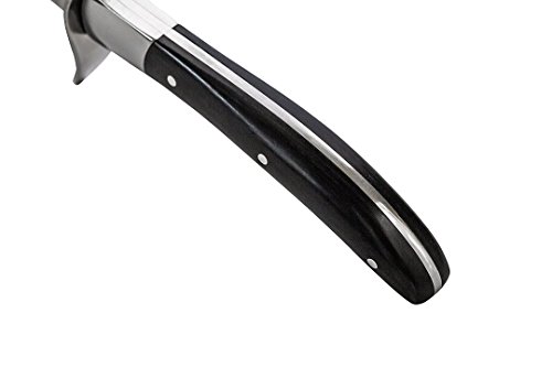 SLEEK AND COMPACT DESIGN - The black curved Pakkawood handle is designed for a comfortable grip while also giving you better leverage. Pakkawood is a composite wood, which is easy to care for and hygienic as plastic with the look and feel of hardwood. Built in Safety Hand Guard helps with additional protection.