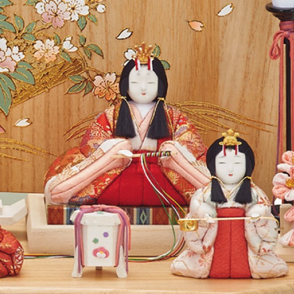 ・親御様、お子様、縁者様の健康と発展を願いながら職人が丁寧に仕上げた雛人形飾り/雛人形が初節句のお祝いにはなを添えます。