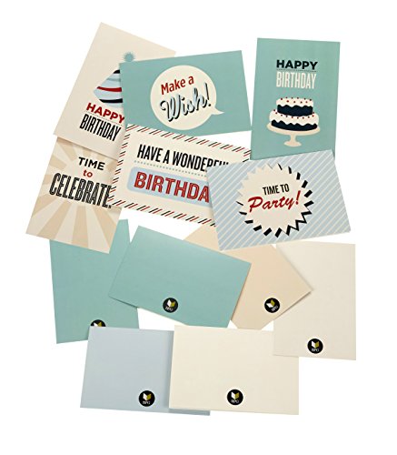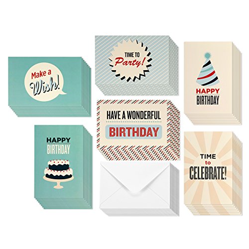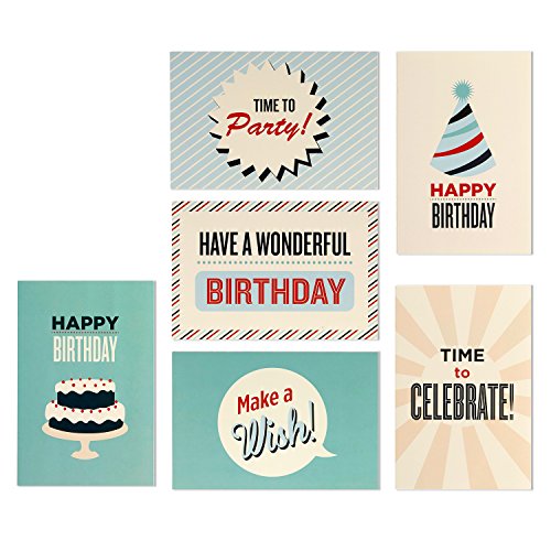 48 Pack Happy Birthday Greeting Cards, 6 Vintage Retro Birthday Cake Party Hat Designs, Bulk Box Set Variety Assortment, Envelopes Included 4 x 6 Inches