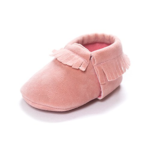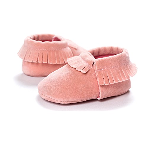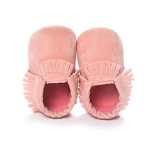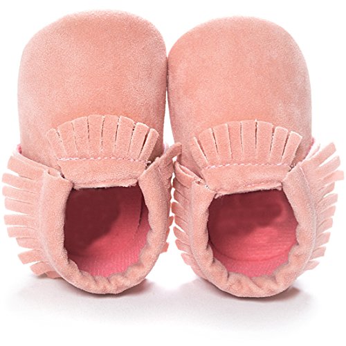 Fringed soft soled shoes are suitable for newborn boys or girls.Classic, high quality moccasin with soft soles and elastic openings to help keep them on