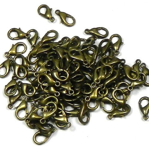 Rockin Beads 100 Antiqued Brass/gold Plated Lobster Claw Jewelry Findings Clasps 12x7mm