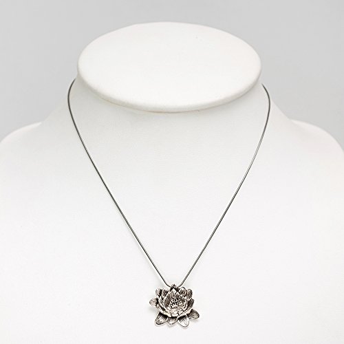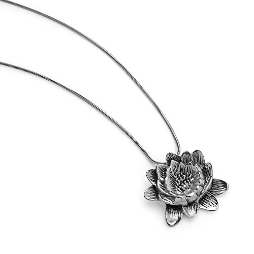 -. Title : 925 Sterling Silver Blooming Lotus Flower Antique Design 2-D Pendant Necklace, 18 inches Chain