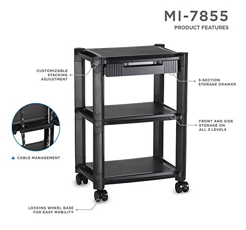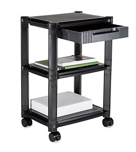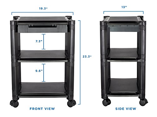 LARGE ROLLING CART – Each of the three shelves measure 19.25 x 12.62 inches, large enough for most laser and inkjet office printers. Spacious pull out drawer with individual compartments. Up to 25 inches of height helps store paper or other office items under the riser.