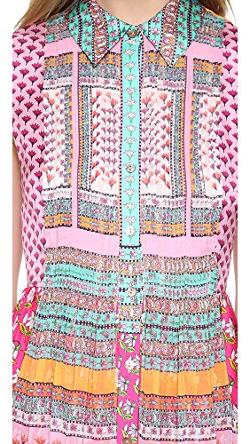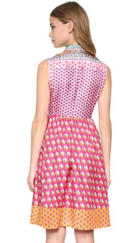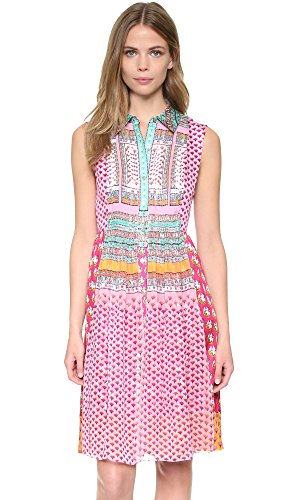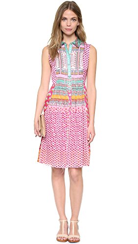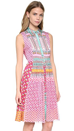 Bright prints bring vivid color to this DVF dress. Pleated chiffon borders the buttoned placket. Fold-over collar. Sleeveless. Unlined.