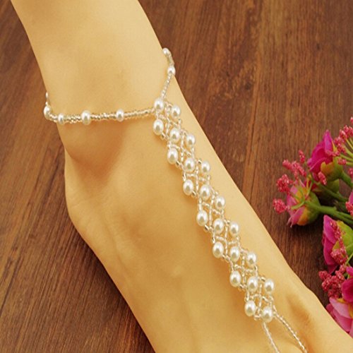 Black Menba Pearl Barefoot Foot Jewelry Anklet for Sandals& Beach Wedding(1 Pair)