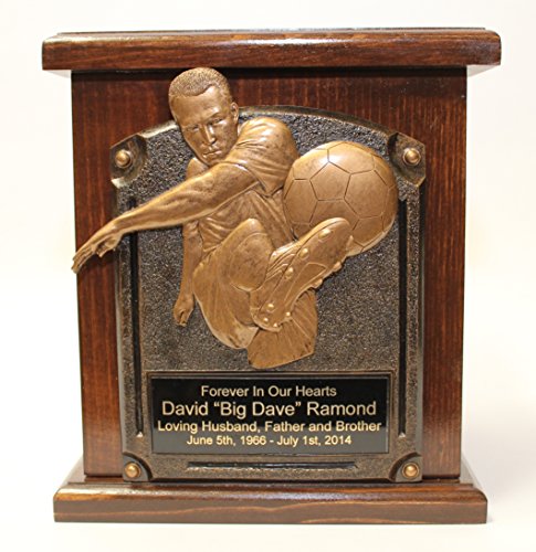 Studio : NWA Publisher : NWA Product Description Beautiful solid wood funeral cremation urn. Comes with a three dimensional metal plaque. Engraving on the plaque included in price. *Secure bottom opening * Outside dimensions: 9.5"x 8.5" x 7" * 250 cubic inch capacity. FULL SIZE ADULT URN Please email us the information on engraving. 0