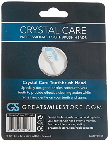 Designed especially for the Great Smile Store Crystal Care Professional Sonic Toothbrush (Model# GS25093-0104) only, these replacement toothbrush heads attach easily to polish teeth at 31,000 strokes per minute while removing plaque more effectively than standard toothbrush heads. The extra soft bristles and compact brush head effectively cover the entire surface of each tooth to gently target hard to reach areas. To ensure that your Crystal Care Professional Sonic Toothbrush continues to deliver optimal clean and your brightest smile ever, dentists recommend replacing your brush head every three months.Feature