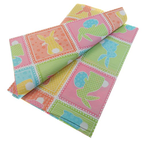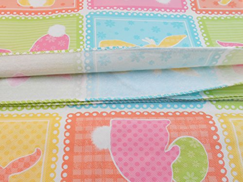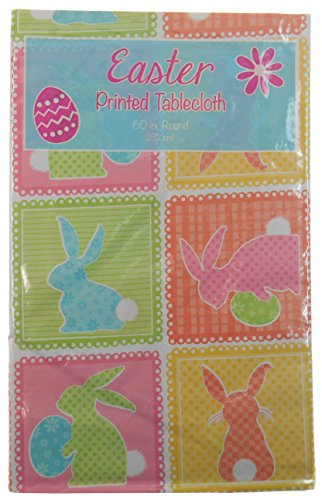 Easter Pastel Patchwork Print with Bunny Patches - Vinyl Tablecloth with Flannel Backing (60" Round)
