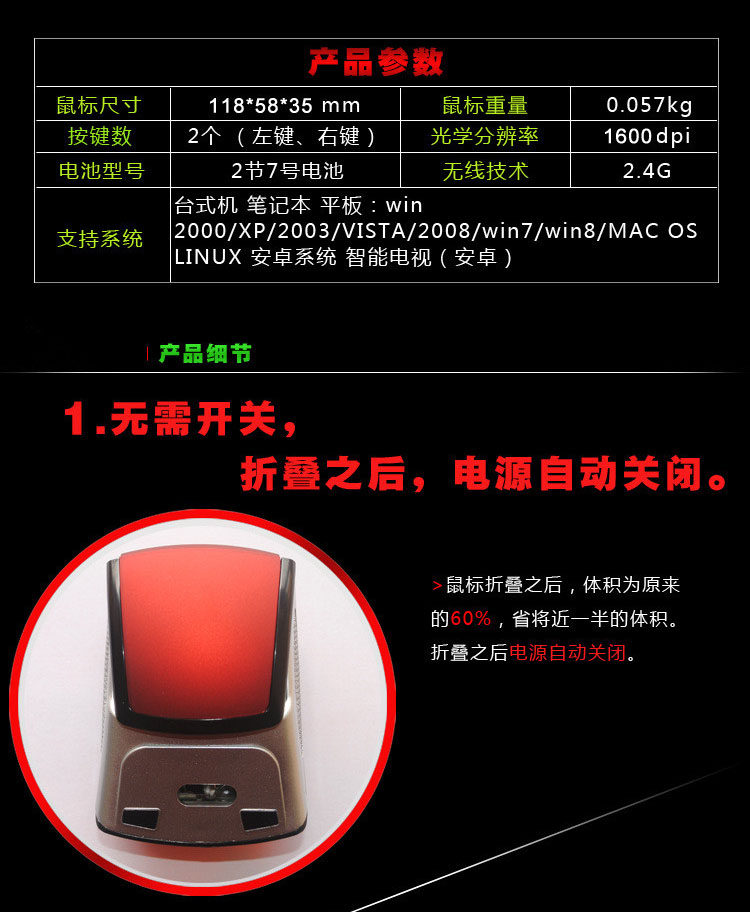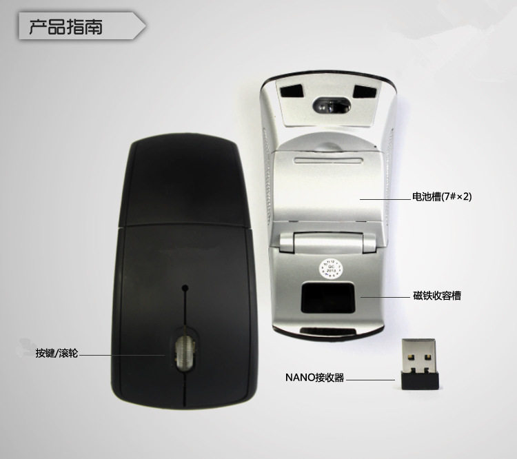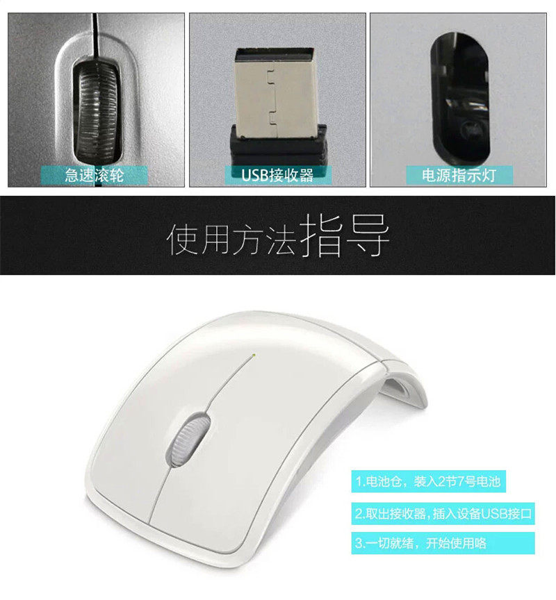 Note: Please install the battery near the end of the mouse when the battery