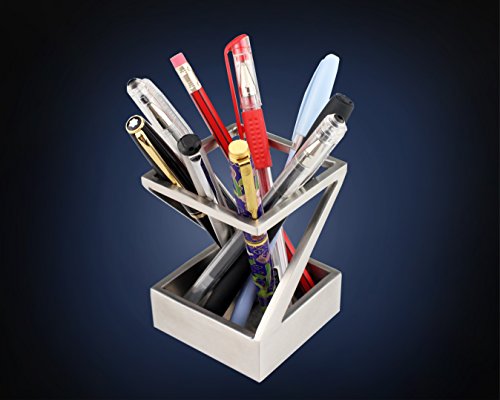 ArtsOnDesk Modern Art Pen and Pencil Holder St203 Stainless Steel Satin Finish Patented Luxury High-end Deck Accessory Desktop Pen Case Cup Tray Stand Office Organizer Christmas Valentines Gift