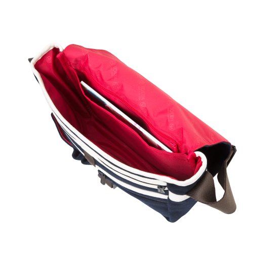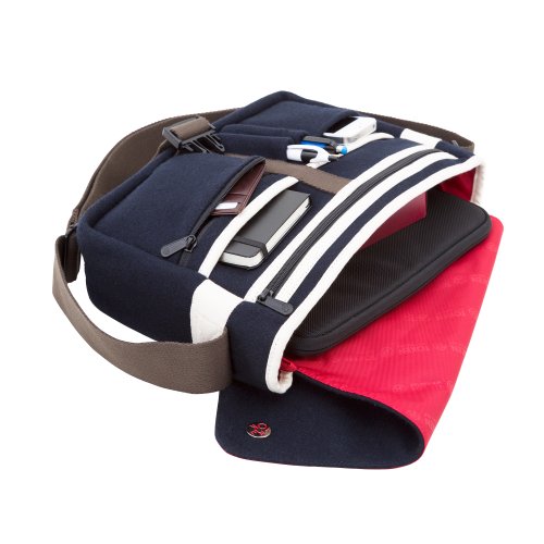 -. Feature : Water-resistant lining / Compartmentalized front pocket / Accommodates up to a 13 inch laptop