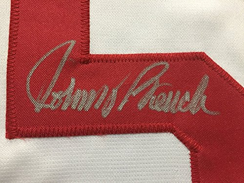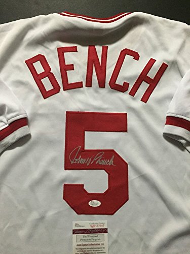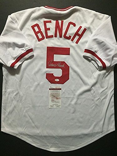 Autographed/Signed Johnny Bench Cincinnati Reds White Baseball Jersey JSA COA