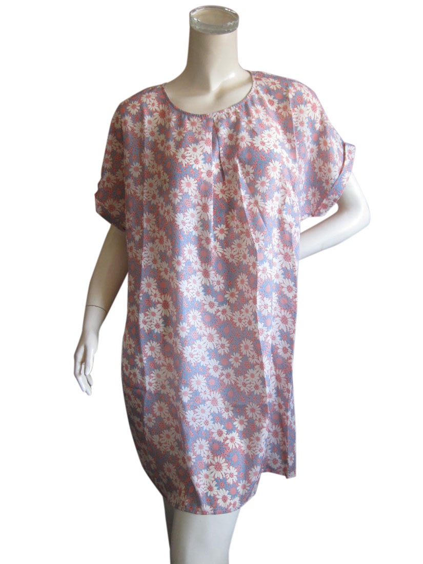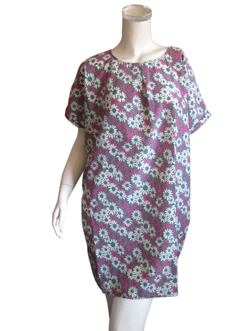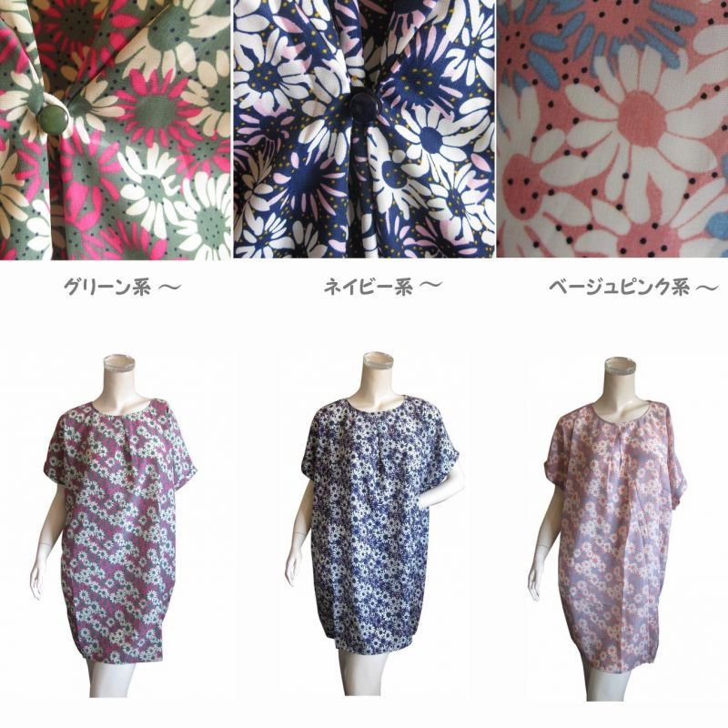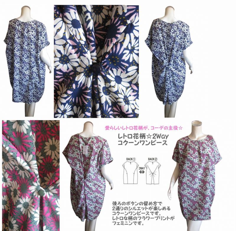 愛らしいレトロ花柄の2Wayコクーンワンピース 3色(チュニック ドレス)
