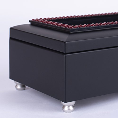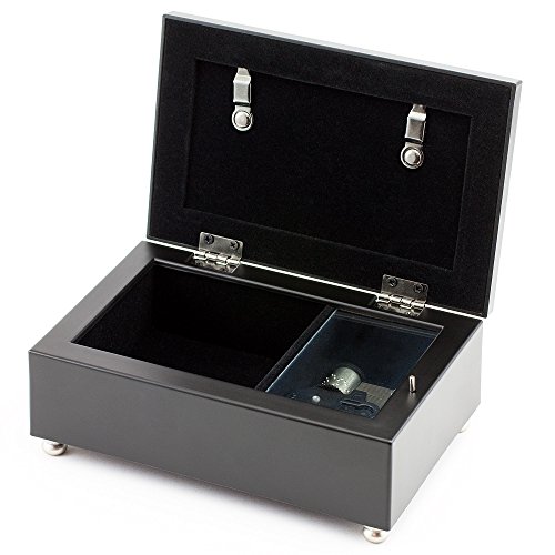 Black velvet lining with quality Sankyo musical movement visible under glass. Cushioned bun feet prevent scratching surfaces