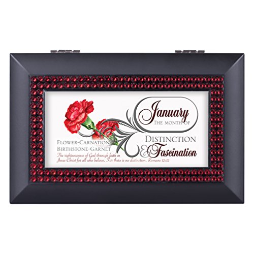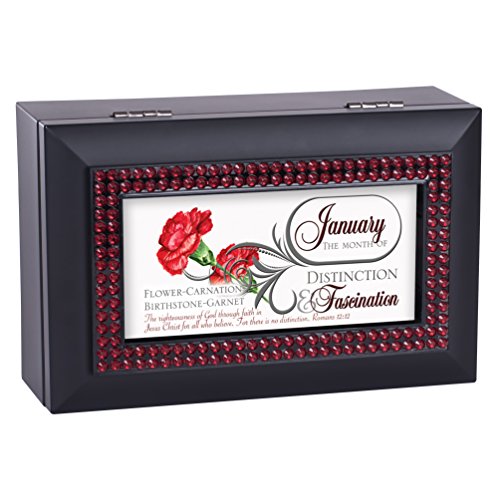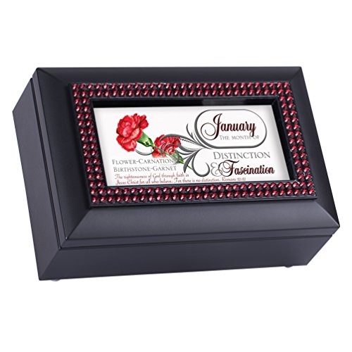 January Garnet Carnation Faith Birthstone Black Jewelry Music Box Plays Tune How Great Thou Art