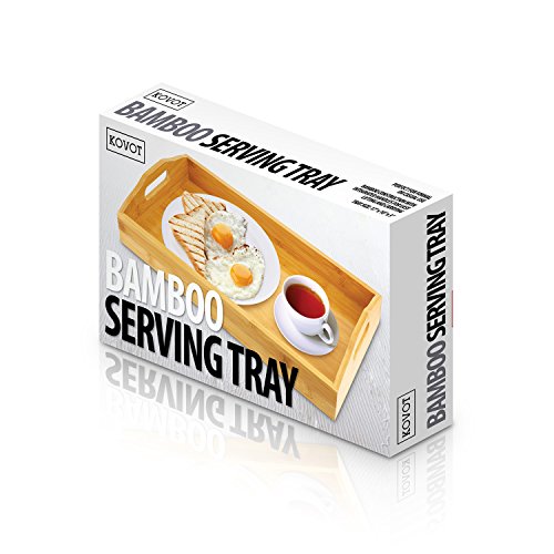 KOVOT Bamboo Serving Tray - Breakfast Butler Tray With Handles: 17"L x 10"W x 3"H