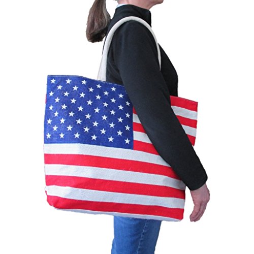 - YOU WILL LOOK MARVELOUS – wearing your over the shoulder, patriotic tote that has red, white and blue stars and stripes printed on both sides. Eye catching design!