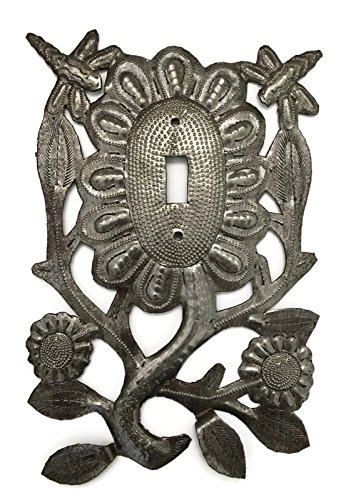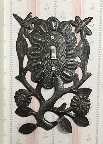 Folk Art Flower Switch Plate Cover Recycled Metal Made in Haiti, 5.5" x 9"
