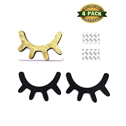 - ❤Package Included: 2 pairs (4 pieces) of cute wooden eyelash wall decoration, gold (2 pieces) and black (2 pieces), each piece is 6" x 4" x 0.2", 2 pieces of 3M glue.