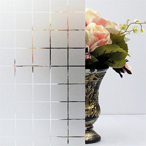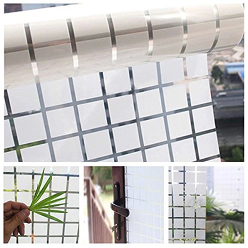 Fyore Silver Grid Privacy Window Film Non Adhesive Static Frosted Decorative Glass Window Sticker for Office Bathroom Heat Control Sun Blocking Film (47.24x39.37inches)