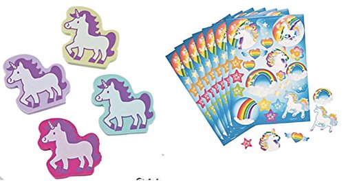 Unicorn Stickers and Erasers Set (36 Pieces)