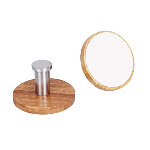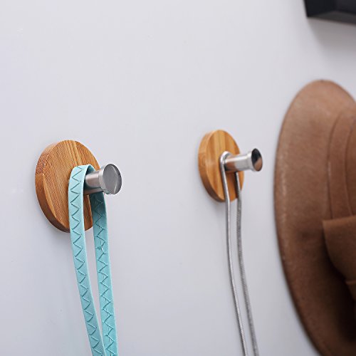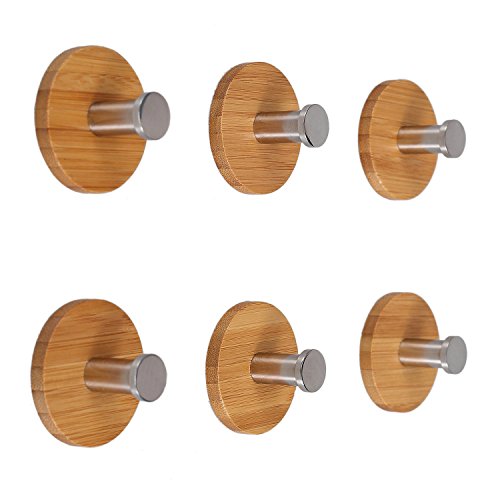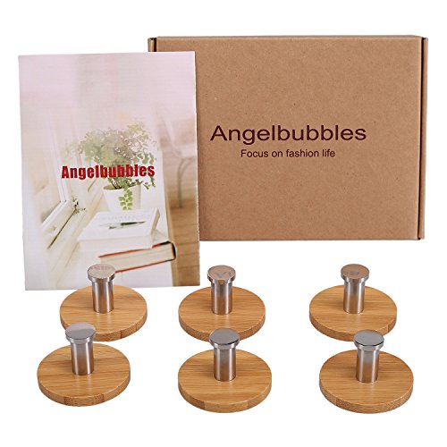 NOTE: * Please ONLY apply to clean and dry surface (powder wall is not fit) * Put pressure hardly on it when apply * Wait at least 24 hrs before hanging something * It's not removable due to its strong stickiness, please choose the spot with care (If you need the removable or reusable magic hooks, search this ASIN:B01D5R05RC) Why choose this hooks ? Attractive and useful throughout home and office, these Asian inspired bamboo wall hooks provide strength, beauty and durability for many tasks. Did you notice the Stainless Steel retaining ring near the end of each hook ? Items stay in place. On or off hangers, the hooks hold coats, clothing, hats, towels, robes, leashes, keys, even pots and pans (up to 4.5 pounds). Also, with their distinctive appearance, use a set to support artwork, show off a prize tapestry or designer carpet. You??ll have a unique conversation piece. Where to use ? Mount these in the entry, family room, bedroom, kitchen, office, workshop or garden shed. With six per set, get creative. The round base is made with strong hard bamboo in a light Angelbubbles finish that complements any decor. The mounting side employs high strength 3M adhesive for secure adhesion on a wide variety of surfaces including painted textured wallboard, dry wall, ceramic and porcelain tile, granite, glass, metal, cultured marble, plastic and paneling. Why you need ? Attractive, strong and easy to use, these unique wall hooks are bound to draw compliments. At our price, buy several sets for yourself and as gifts (there is an option to purchase with gift wrapping). Package: 1 x 6pcs Angelbubbles wall hooks 0 |