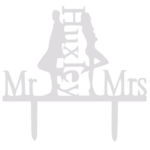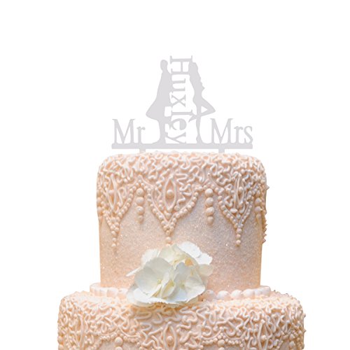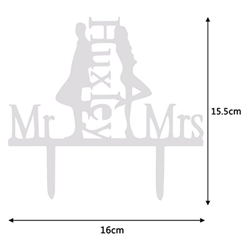 Grinde NO Personalized Bride and Groom Wedding Cake Topper Mr & Mrs Huxley Cake DecorationWhite