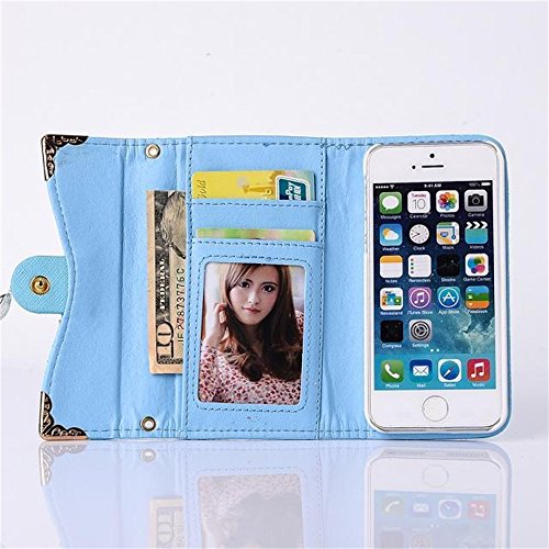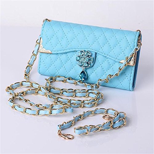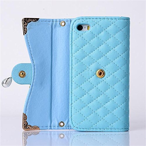 -. Title : (Case for Iphone 5/5S) Bon Venu Luxury Girl loving fashion bling flower pu leather with Chain handbag cover wallet case For iPhone 5 5s+ Shoulder Chain Luxury case wallet + Free Screen Protector (Blue)