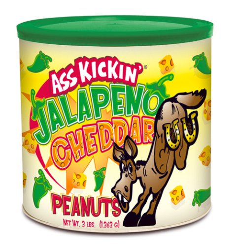 3lb Can of Jalapeno Cheddar Peanuts - A Delicious combination of Jalapeno's and Cheddar flavoring to create a irresistible Ass Kickin' treat.