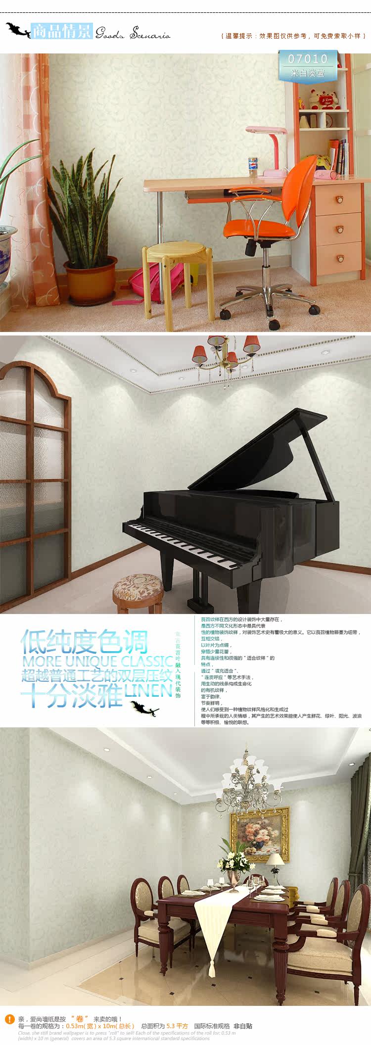 Material :Non-won Fabric wallpaper