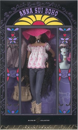 Fun, funky and stylishly fashionable Anna Sui Barbie has a pink embroidered tops, cropped jeans with Ana Sui's signature stitched in the back pocket, and a Silver strap attached to the belt