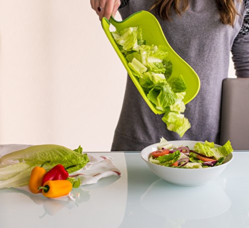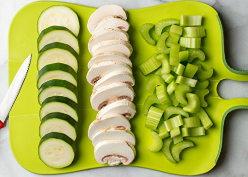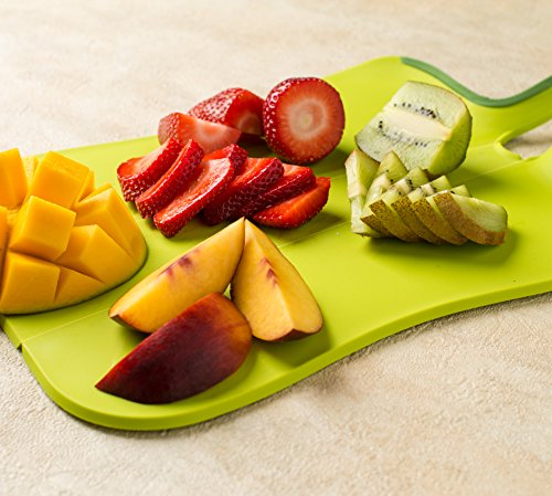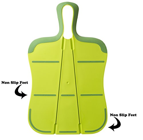 INNOVATIVE AND PRACTICAL DESIGN: This Cutting board is so much different than regular ones. Its innovative design allows it to fold, collect all of the chopped vegetables, and throw them in the pan without any hassle. It will also prevent making a mess since none of the cut pieces will fall out while you are pushing them into the pan. Cooking has never been easier and faster.