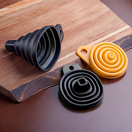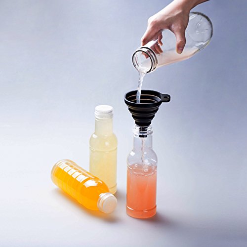 - VERSATILE AND COMPACT ★ The cone body’s foldable ledges allow the funnel to be firmly seated on bottle and jar openings of all sizes. Now you don't need several funnels on hand – and you’ll never again spill a drop.