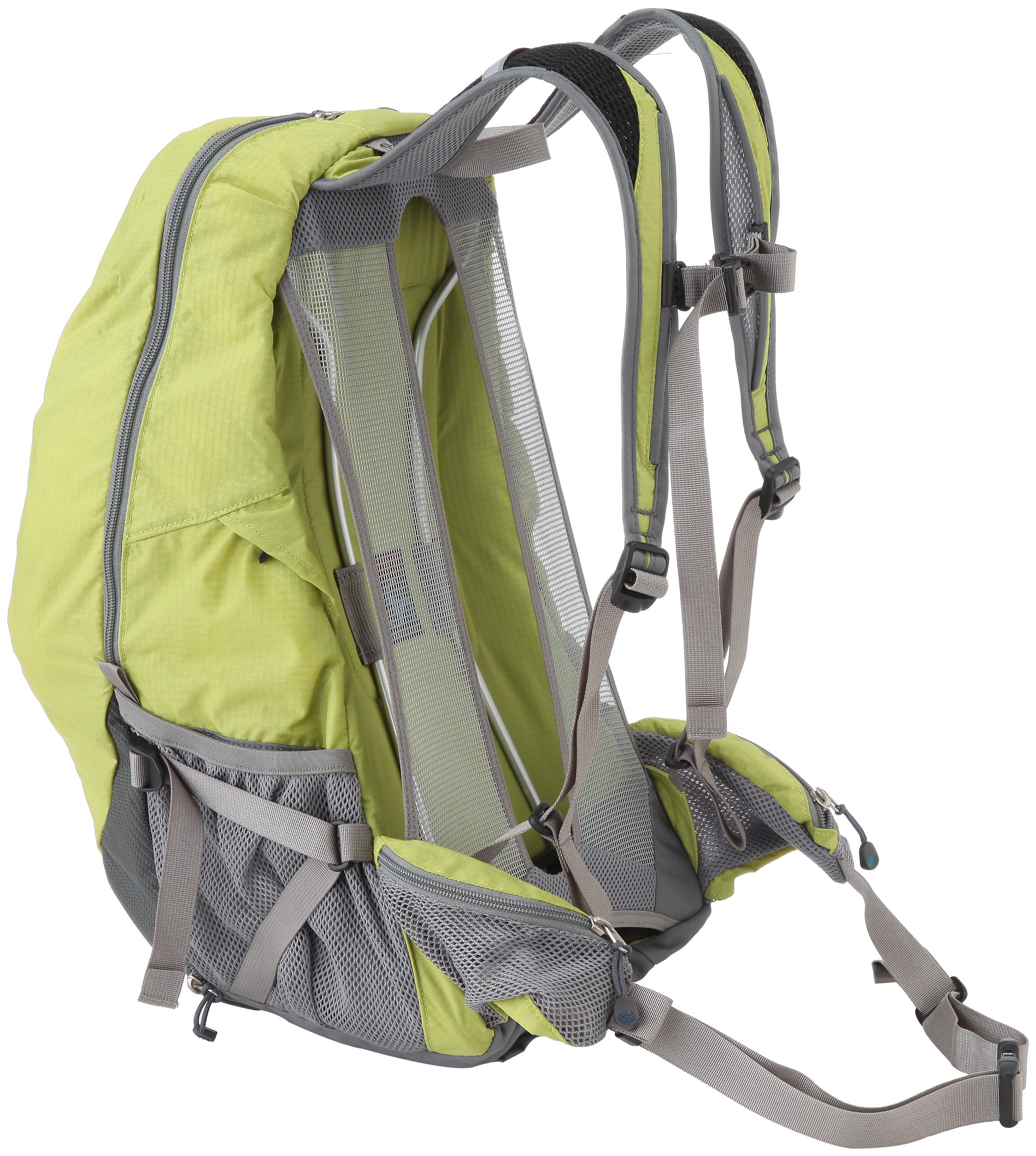 A curved surface is made with a highly rigid aluminum frame on the back of the pack, and a structure is adopted to let the wind pass through between the mesh ground and eliminate steam.