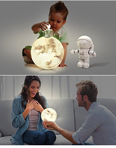 ✅ENVIRONMENTAL SAFE AND STRONG – Made of high quality safe materials, not easy to break or aging, this Portable 3D Print Moonlight Touch Switch LED Glow Desk Moon have a long service life. It does not heat up and it is easily charged by a USB 100cm CABLE (included).